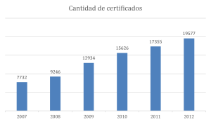 ISO 27001 se ha convertido en la principal norma a nivel mundial para la seguridad de la información y muchas empresas han certificado su cumplimiento; aquí se puede ver la cantidad de certificados en los últimos años: